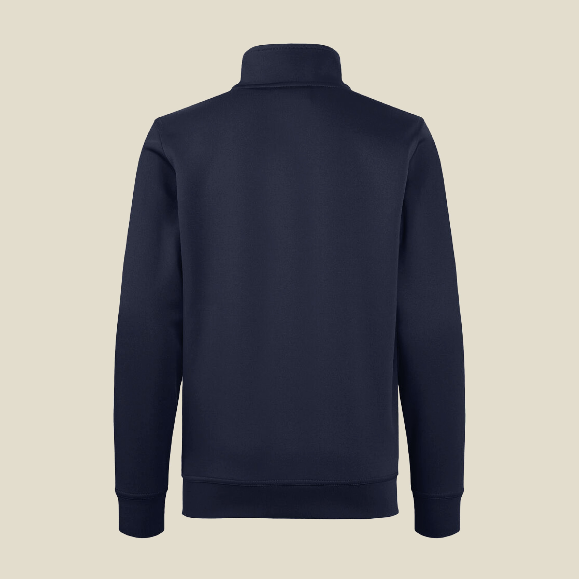Cardigan con zip intera in tessuto tecnico e non felpato con collo alto. Tasche con zip e asole per auricolari.