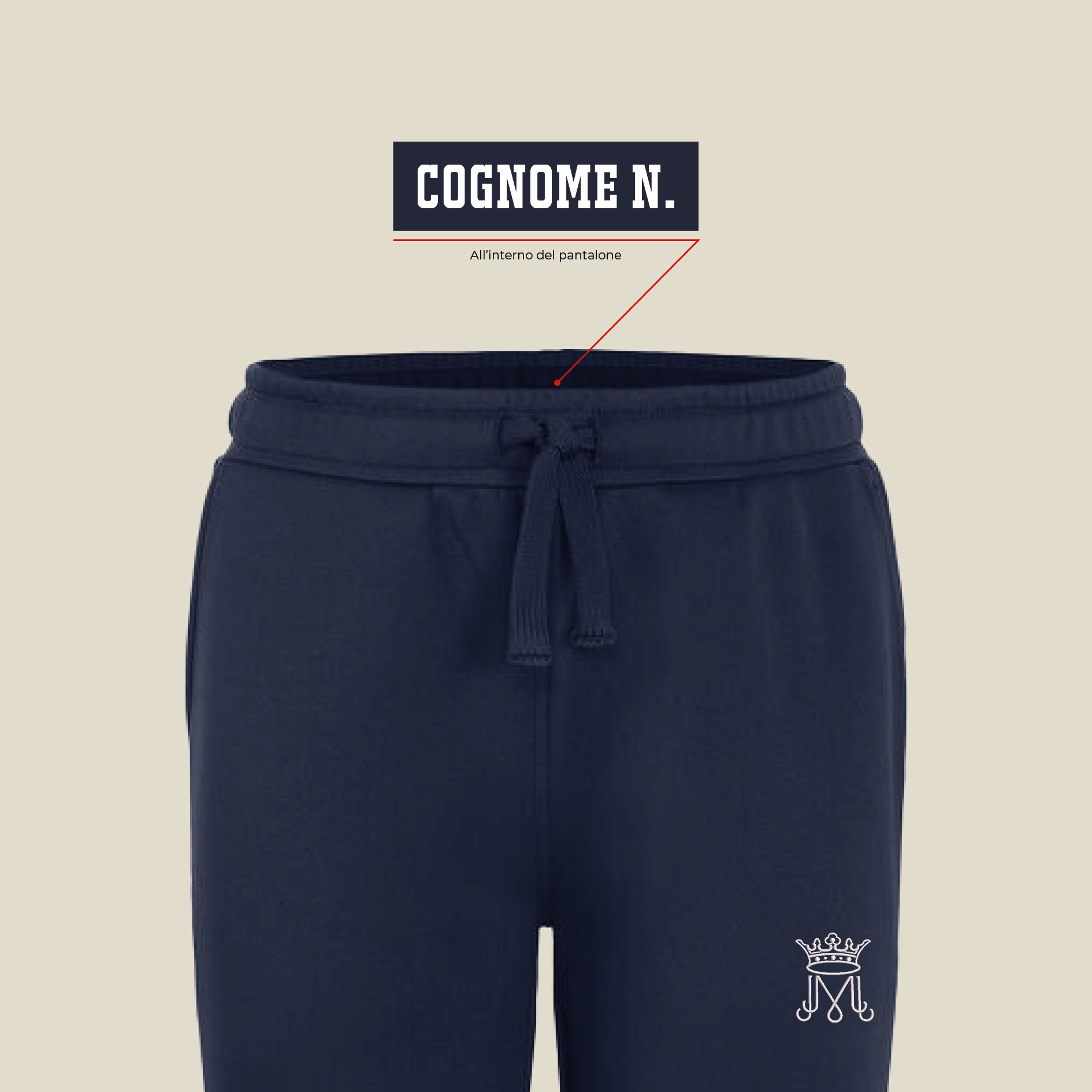 Personalizzato con il ricamo del logo d'istituto su gamba SX.
